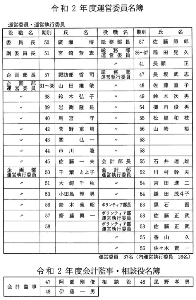 • 同期会正・副代表者名簿
