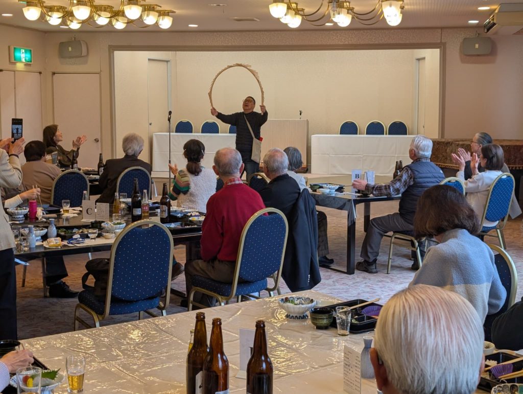 懇親会では、南京玉すだれの演技、手話講習