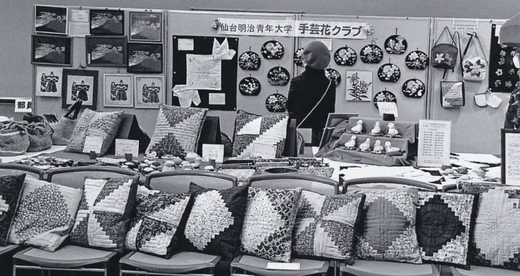 毎年それらの作品を展示し、皆様方にご覧になって頂く 秋の大学祭は、手芸部の重要行事の一つです。