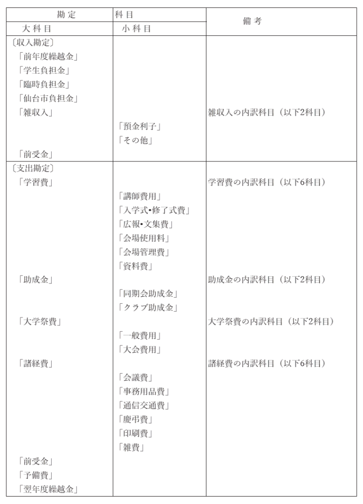 ⑸ 年度内で予算より大幅な超過が見込まれる時は,必要額を「予備費」から補正する。補正の変更は、部協議会での了承をうける。但し、予備費の支出が50万以上の場合は運営委員会の承認をうける。