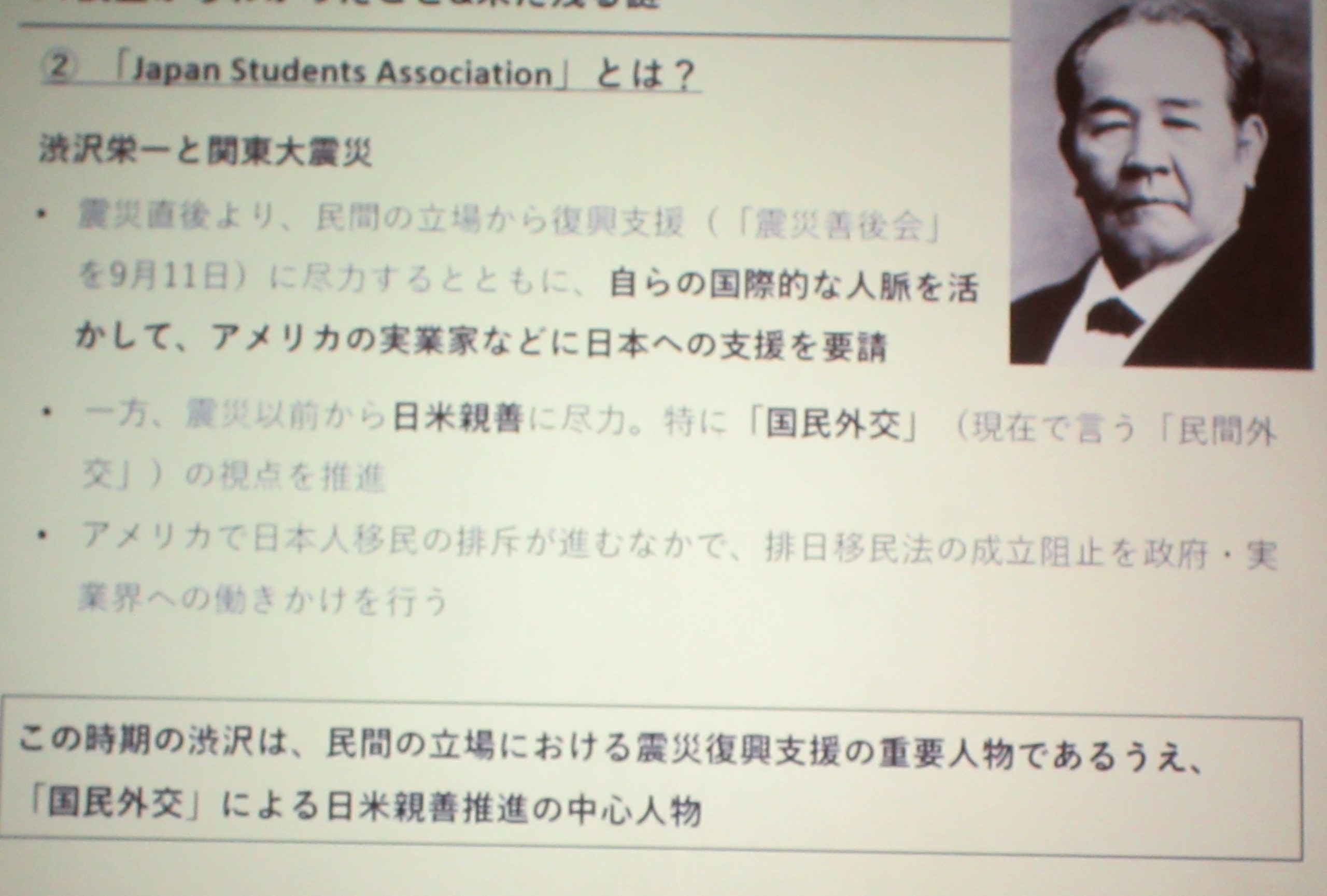 1924年1月、大日本学生連盟主催の駐日アメリカ大使館付武官(日米親善に功績)の送別会に渋沢栄一が出席している。Japan Students Association(大日本学生連盟?)は渋沢と関係する団体であったか? そうであれば手紙が日本政府からアメリカ大統領に渡されたことも納得できる。 渋沢は国際的な人脈を生かし、日米親善、国民外交(民間外交)を推進、排日移民法の成立阻止を働きかけていた。しかし1924年5月上旬は、すでに法案成立不可避のタイミングであった(1924年7月1日排日移民法施行)。日本は中国へ利権を求め、日米戦争も懸念され始めていた。