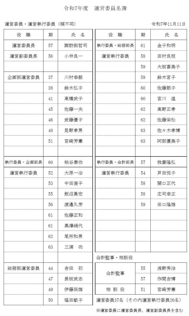 同期会 正副代表者名簿